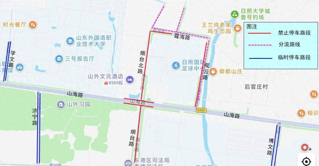 2.2025年10月18日14时30分至22时30分,山海路(博文路至济宁路)、烟台路(山海路至学苑路)、霞海路、观云路等路段,在观众入散场高峰时段根据道路流量实际情况,适时对机动车、非机动车、行人采取疏导分流、限制通行、禁止通行等交通管控措施。
